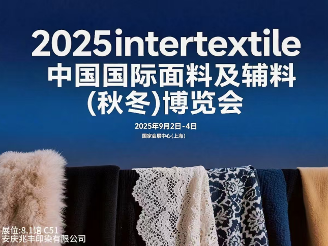 2025年9月2日 - 4日,备受瞩目的2025 Intertextile 中国国际面料及辅料(秋冬)博览会将盛大启幕!安庆兆丰印染有限公司深耕面料领域多年,始终以“创新驱动、品质为先”为理念,专注于各种面料的研发与设计。